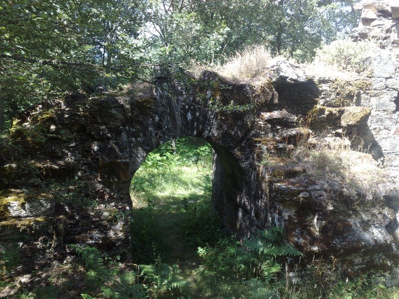 Paradiñas. A media ladera, y a mano izquierda, sale la pista que conduce a la fábrica de hierro de La Somoza, primer punto de destino. En un par de kilómetros se llega a las ruinas de lo que en su momento fue una ferrería (principios de XIX) ilustrada. Quedan en pie unos muros de la primitiva fábrica y un horno. De todo ello queda información puntual en los paneles que la Junta de Bierzo ha desplegado por el lugar. Existe una área recreativa bien acondicionada, excepto por la ausencia del agua prometida, en un lugar húmedo y verde (que estamos a finales de Julio). Parte desde allí un recorrido circular de unos 5 Km. que recorre el frente de explotación de la mina romana de La Leitosa. Parecido a la Medulas pero menos espectacular.