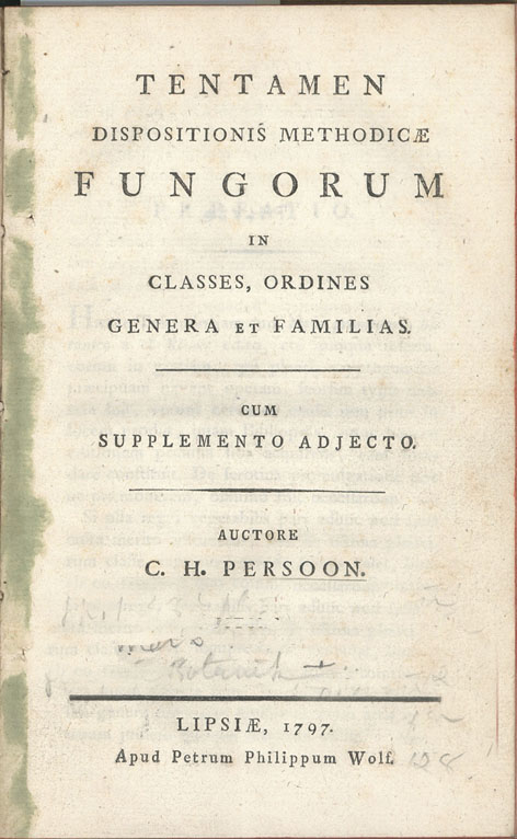 Christiaan Hendrik Persoon considerado como el padre de la micología sistemática, nació el 1 de Febrero de 1761 en El Cabo de Buena Esperanza, Sudáfrica. Su padre Daniel Christiaan Persoon era de ascendencia alemana y su madre Elizabeth Wilhelmina Groenwald, era hija de un granjero holandés establecido en la colonia, y murió algunas semanas después de su nacimiento. Siendo un niño, en 1775 es enviado a Europa para cursar estudios, su padre moría en Sudáfrica un año después. Inició al principio estudios de teología en la ciudad de Halle y posteriormente estudio medicina en Leyden donde termino en 1786 pasando después a la universidad de Götinga a continuar estudios en ciencias naturales y botánica, terminando por obtener un doctorado en la academia de Ciencias Naturales de Erlangen en 1799.