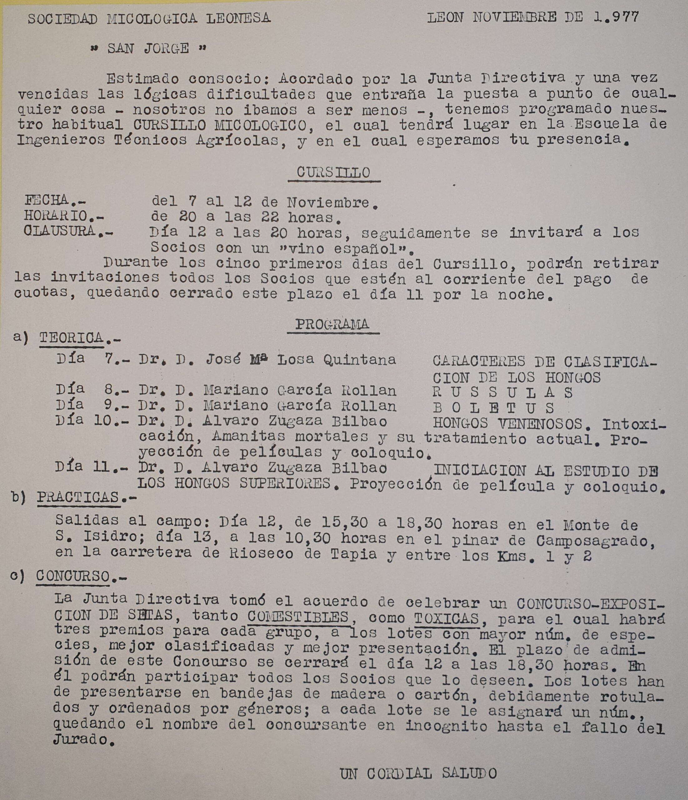 Técnicos Agrícolas) los llamados “Cursillos de divulgación micológica”