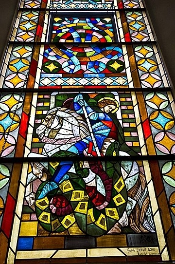 Como no podía ser menos, también hay otras menciones al santo como el Sant Jorissen en la Sant Joriskerk en Amersfoort imagen izquierda en la provincia de Utrecht o en Eindhoven con esta bella imagen de vidriera.