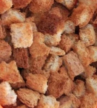 añaden unos picatostes de pan que previamente hemos sofrito un poco en el