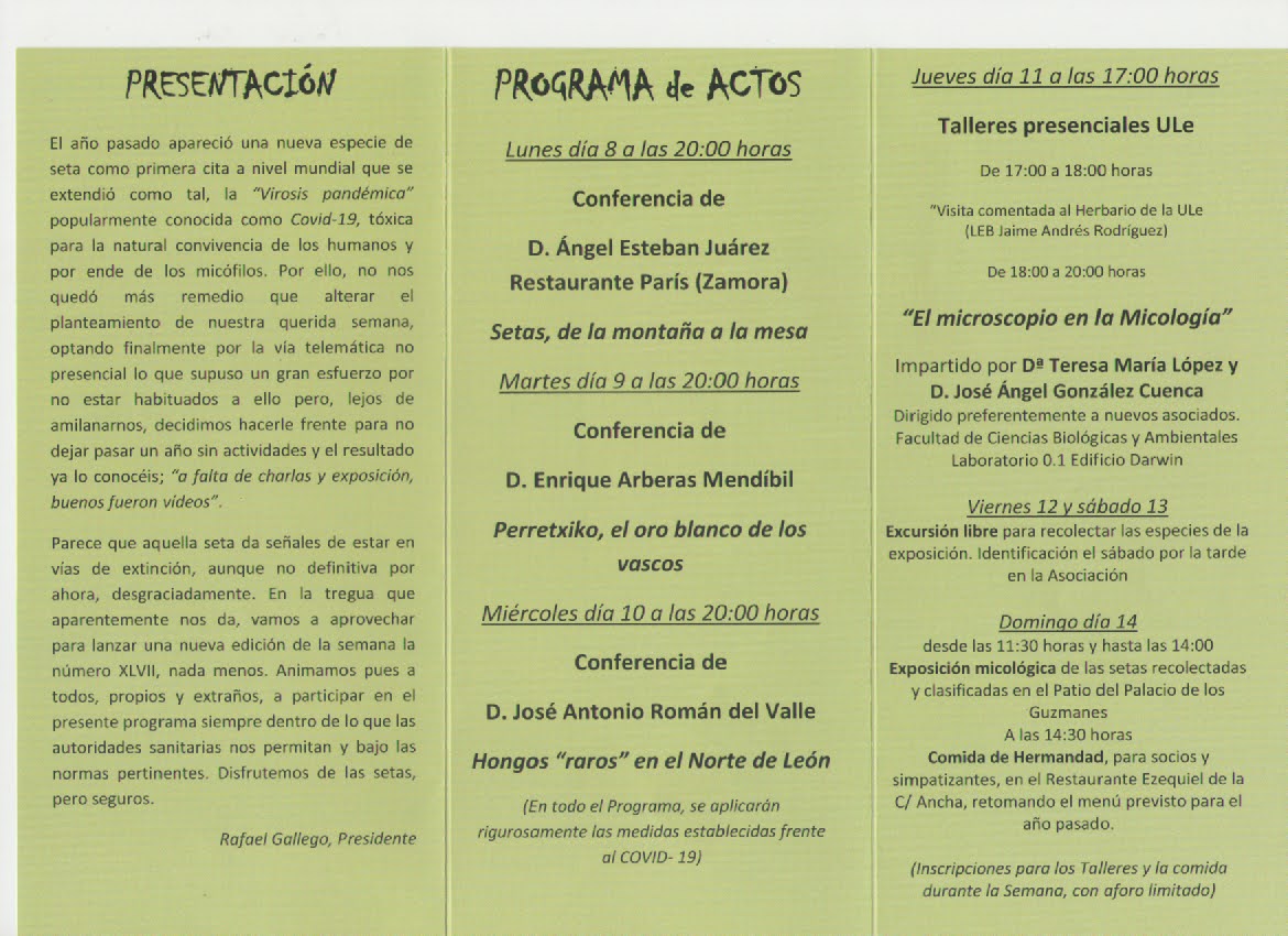 Y no. No fué un robo con fuerza. Ni tan siquiera hubo que pelear con la Junta Directiva. No hubo agresión alguna. Simplemente nos llegó la cosa, tal cual, por correo.Algo que debería ser habitual, pero que nos deprime. Aquí está el Programa de la XLVII Semana Micológica de León.