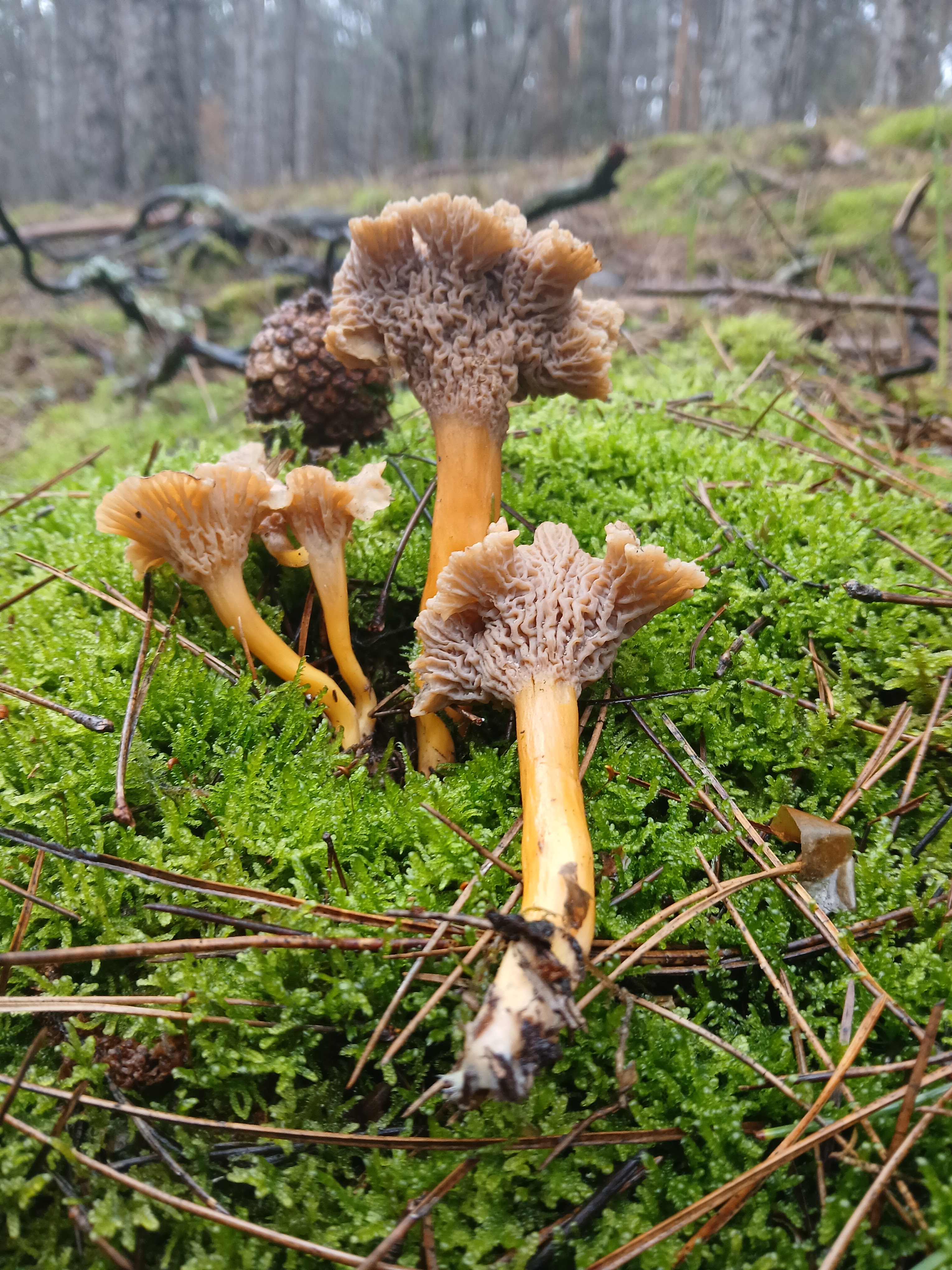 No tardaron en aparecer lus últimos y envejecidos Cratherellus tubaeiformis, haciendose acopio de los pocos amarillines, que haberles, les había.