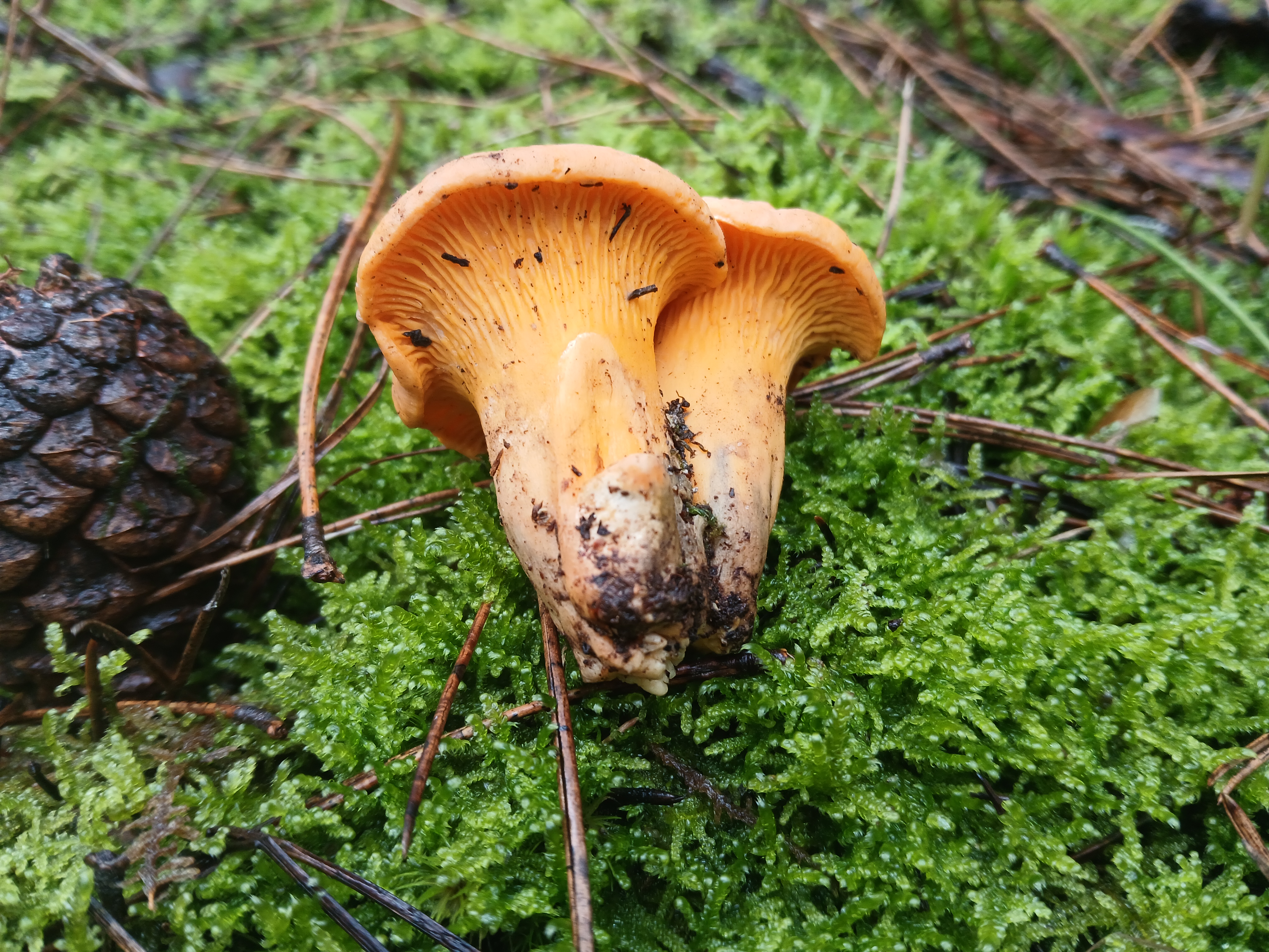 Pero tal y como están las cosas, en este año anómalo en el aspecto meteorológico, tampoco nos llamó mucho la atención encontrar los primeros rebozuelos (Cantharellus cibarius) especie que se la conoce como seta de San Juan por hacer su aparición en esa fechas.