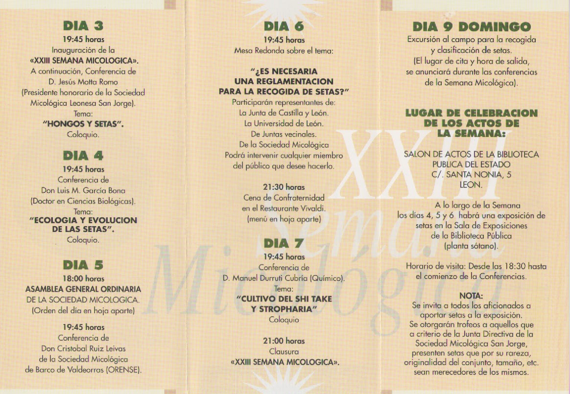asimismo en esta reunión celebrar la XXIII Semana Micológica de León en la