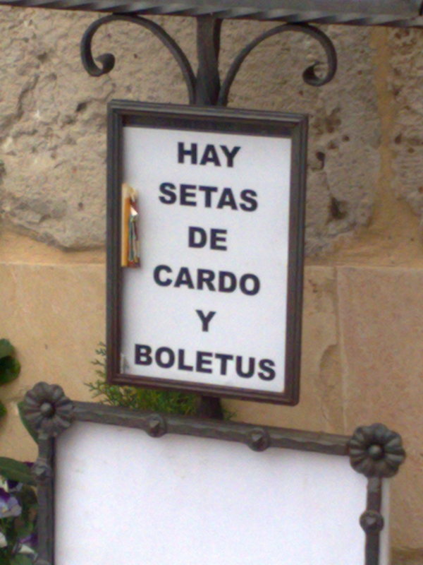 La quedada era a las 10:30 en el camping de la localidad de Riaza,cabeza de la que fue Comunidad de Villa y Tierra, con milicia y justicia a cargo de su propio Concejo. Las huestes leonesas fueron recibidas por la organización, al son de la flauta y el tamboril, con las consabidas pañoletas conmemorativas y el correspondiente número atrasado del boletin micológico de la Federación. Como se llegó tras el madrugón con apetito desbordado, se rebañaron hasta sus últimas consecuencias, los huevos fritos con panceta y longaniza que acompañados de vinillo del DIA, esperaba a los asistentes.