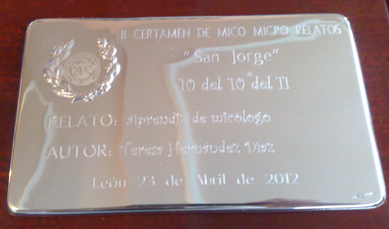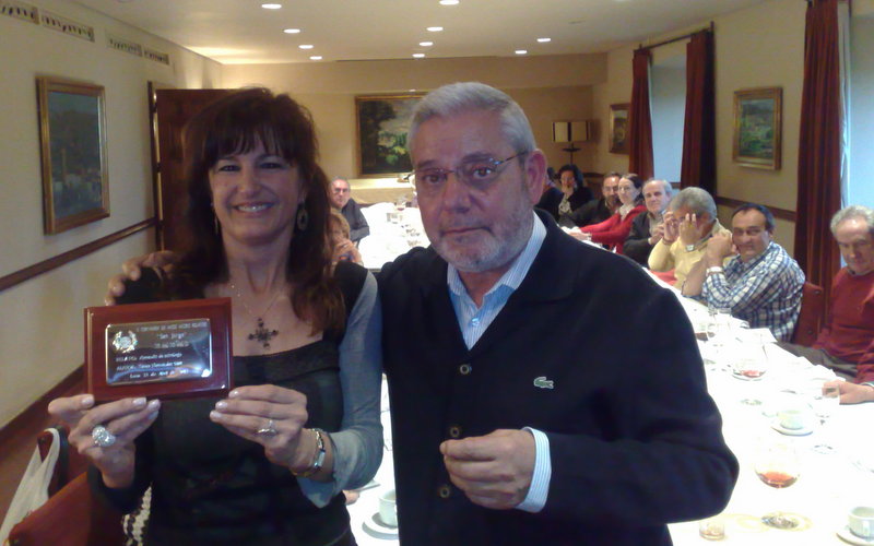 A los postres se dio lectura al fallo del jurado del II Certamen de Mico micro relatos «San Jorge» recibiendo de manos del presidente y en nombre de Dª Teresa Hernández, autora del relato ganador, la placa personalizada del Primer premio, la compañera, y sin embargo amiga, Belén. Desde aquí, no nos queda mas que felicitar a la autora, que recibirá en su domicilio próximamente el galardón.
