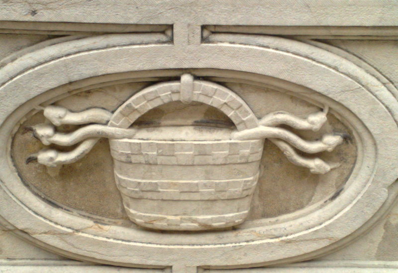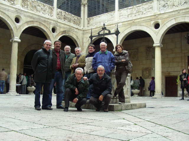 Habiendo tiempo para todo, y siendo esta quizá la última exposición que se haga en este lugar (y esto sin confirmar) se dio un repaso a los valores arquitectónicos del edificio en cuestión. Aparentemente obra ésta del arquitecto Rodrigo Gil de Hontañón, presenta en los antepechos de la galería superior, así como en el pozo central, bajorrelieves de lo que se supone pueda ser el escudo de armas del Guzmán o Quiñones constructor del edificio. Aunque casi seguro que representa un caldero, del que surgen, o no, unas serpientes, la calienta imaginación de un aficionado micólogo, ve con meridiana nitidez una alegoría a esta afición nuestra, creyendo ser el objeto representado una cesta, creemos que de lamas de castaño, como recomienda la ley, significando las serpientes un simple aviso de que se pudieran recolectar setas venenosas y/mortales. Es mas, la vidriera que da luces a la entrada, o salida, del Palacio representa el mismo caldero, o cesta, pero ya sin unas serpientes tan manifiestas. Es decir: Quién acudió a la exposición sale sabiendo.